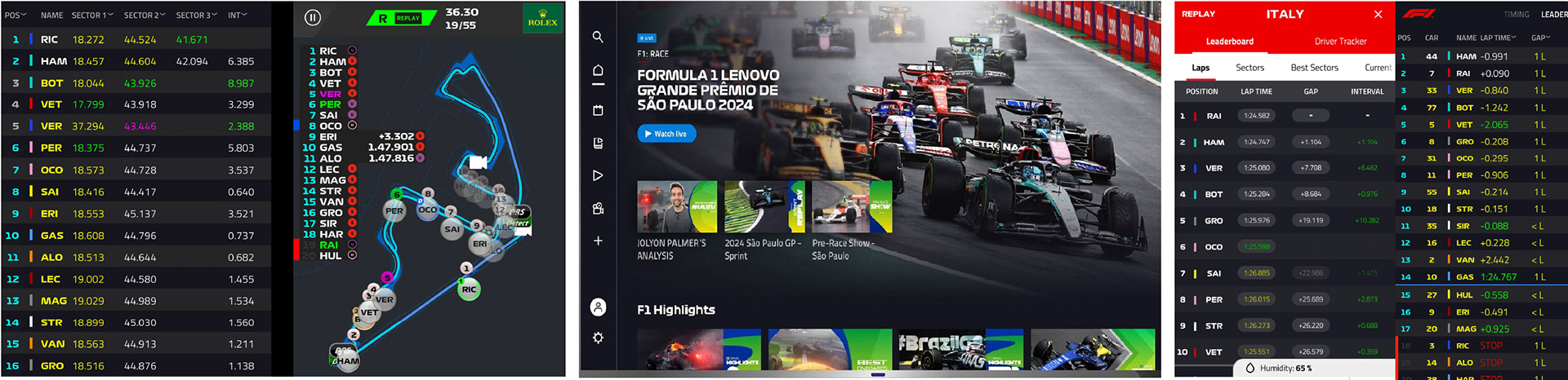 • Strong data depth (telemetry, driver stats, live leaderboard)